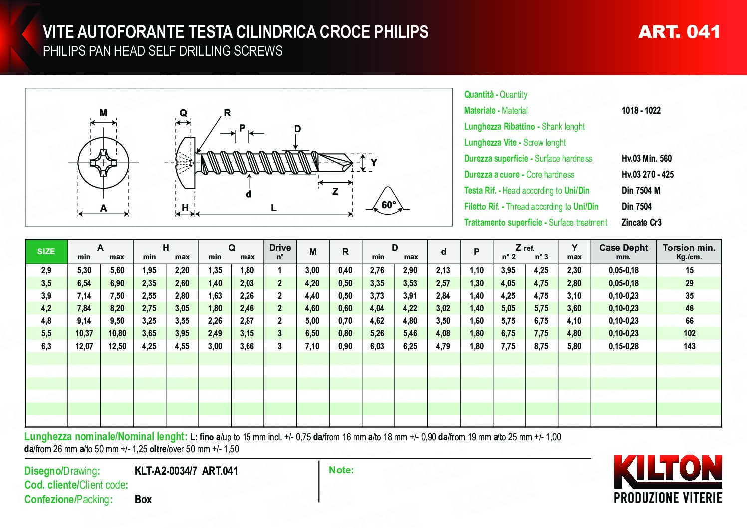 VITI AUTOPERFORANTI 3.9X 16 TC+ PH DIN 7504-N (ISO 15481) ZINC.Cr.3