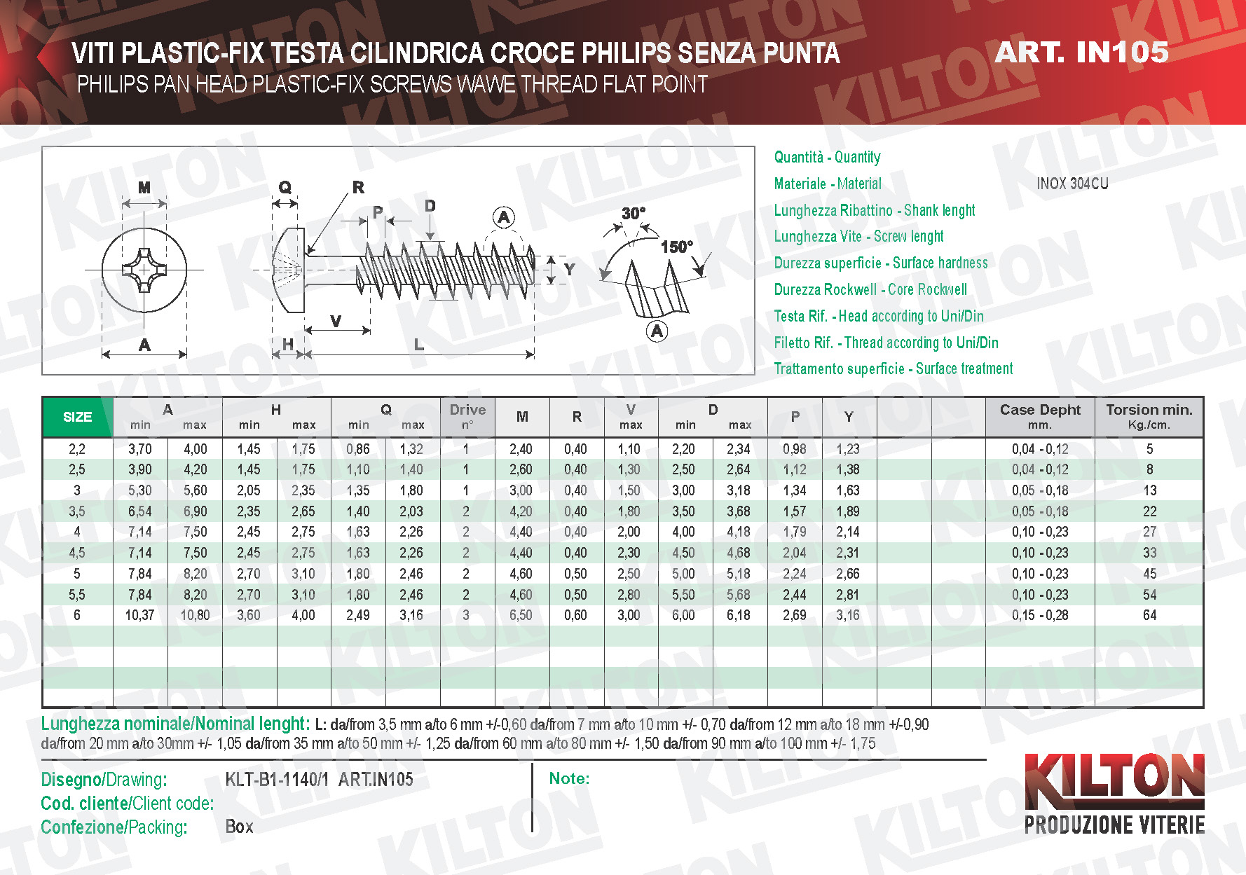 La vite KLT Plastic-Fix 30° è la vite universale che abbiamo realizzato per materiali termoplastici di vario genere. Il filetto a 30° consente sforzi di avvitamento minimi con conseguente riduzione del riscaldamento del materiale su cui il prodotto viene impiegato. Questa peculiarità della vite consente di creare una sede congrua al conseguimento di una tenuta ottimale anche in presenza di materiali termoplastici molto carichi di fibra in vetro o carbonio. Sui materiali più teneri il flusso della plastica che viene indirizzato nel profilo del gambo garantisce una funzione autobloccante, e ciò avviene grazie al particolare profilo del nocciolo a tronco di cono. E' comprovato che le viti con filetti di gradi superiori (come il 40° tipico del truciolare e il 60° dell'autofilettante, anche se con profili trilobati) non hanno le stesse caratteristiche meccaniche di questa vite. I filetti con profili a 20°-25° piuttosto che innovativi, come vengono spesso definiti, sono estremamente dannosi in quanto possono creare inneschi di rottura in manufatti particolarmente caricati in fibra; inoltre il profilo della cresta di tali viti non ha la stessa capacità di tenuta rispetto a quello di 30°, in quanto troppo sottile e poco resistente a strappi e sollecitazioni. Le viti Plastic-Fix sono in grado di adattarsi perfettamente alle elevate dilatazioni dovute alle variazioni di temperatura cui questo tipo di materiale può andare incontro.