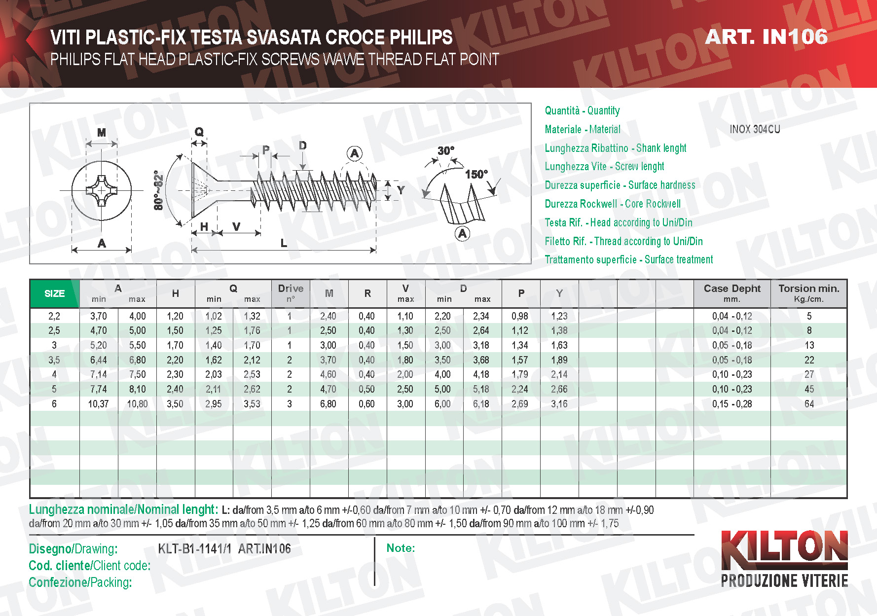 KLT PLASTIC-FIX SCREWS INOX A2 30 ° COUNTERSUNK HEAD PHILIPS CROSS IMPRINT WITHOUT POINT