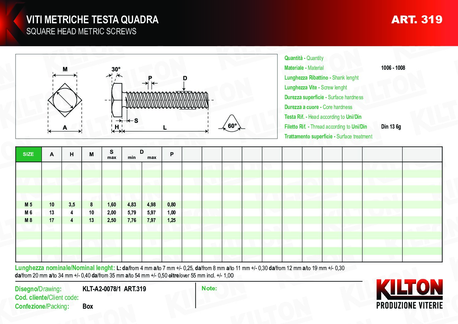 VITI M 8X25 TESTA QUADRA UNI 5726 ZINC.Cr. 3