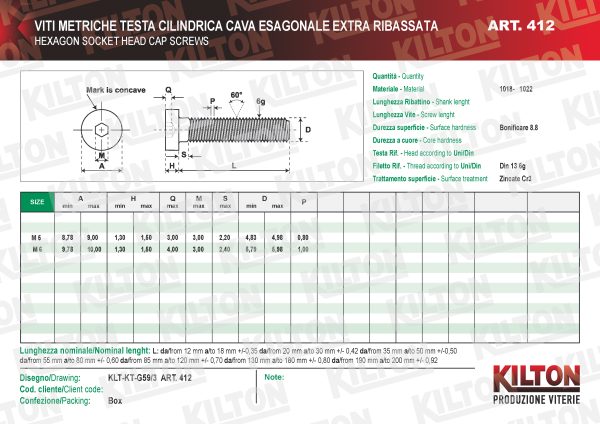 VITI M 5X 8 TCCE BASSA K MAX 1,5 CL. 8.8 ZINC.Cr.3