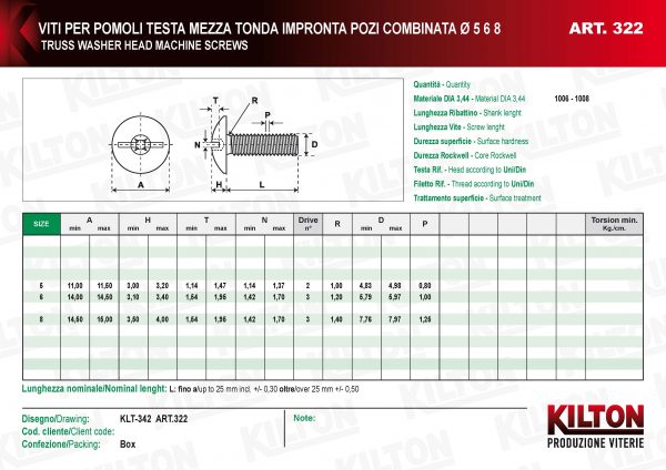 VITI PER POMOLI TESTA MEZZA TONDA FINTA RONDELLA IMPRONTA POZI/COMBINATA